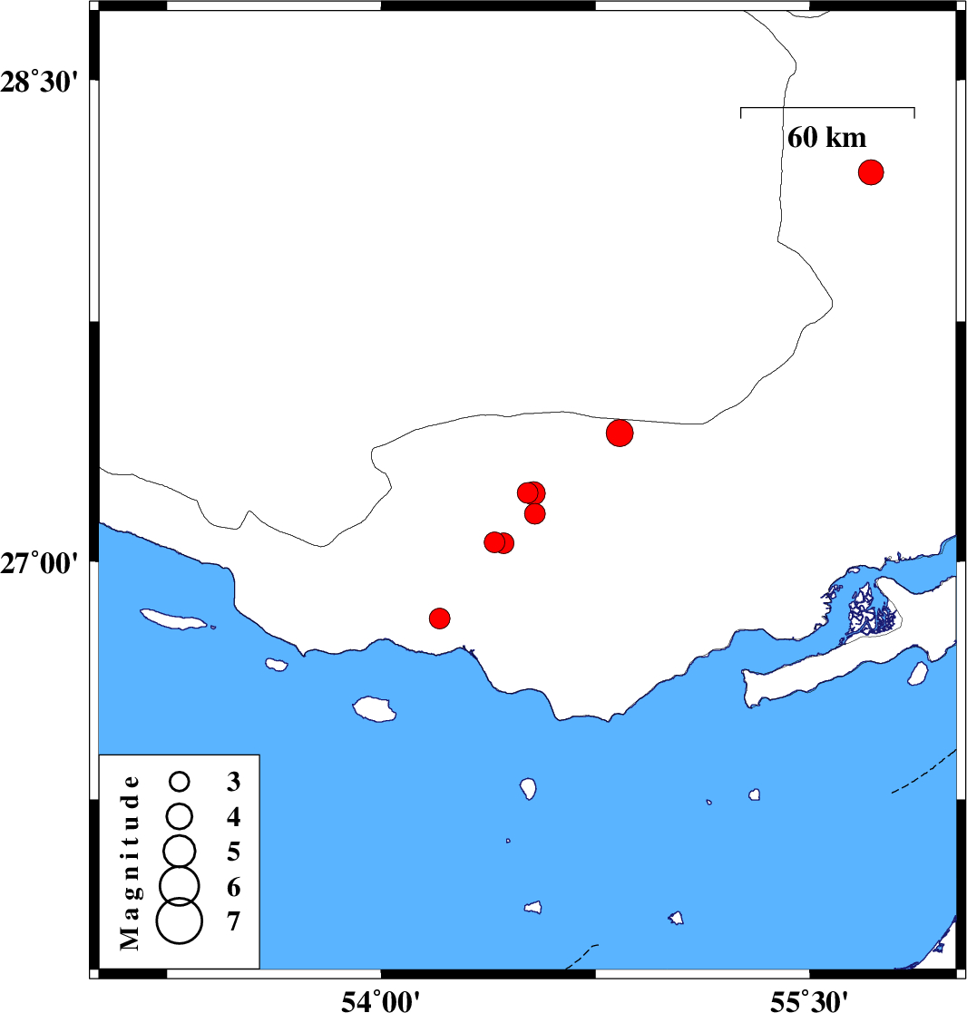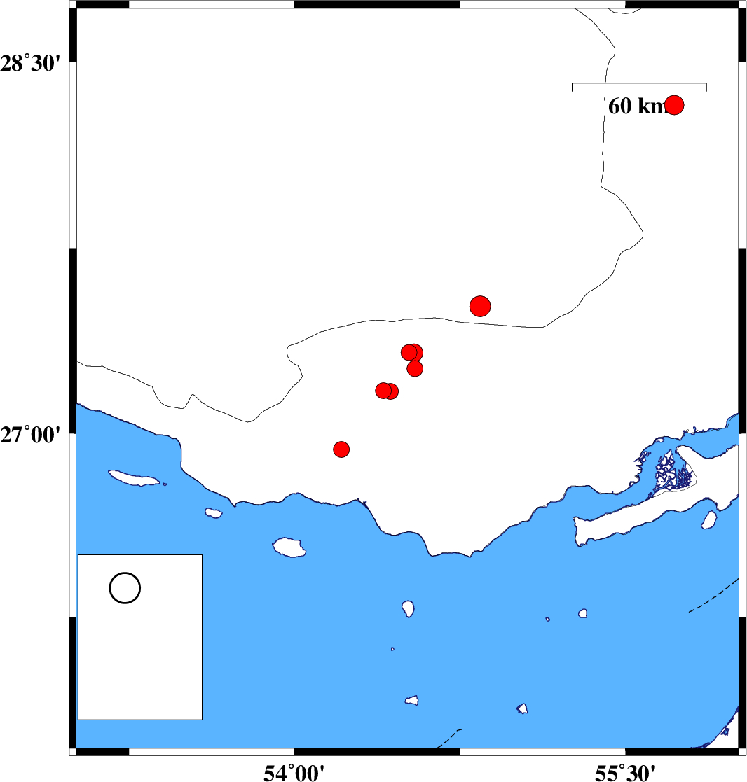 2023/06/22 11:55:48.5 15:25:48.5 27.40154.83416 ML:4.2 Hormozgan Province, 52 km North-East of Bastak