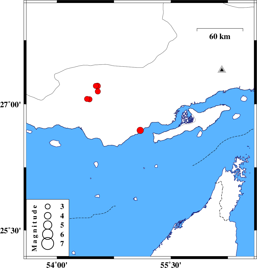 | 2023/07/02 | 09:07:37.8 | 12:37:37.8 | 26.689 | 55.096 | 12 | ML:3.9 | , 31 km North-East of Bandar-e lengeh | ||