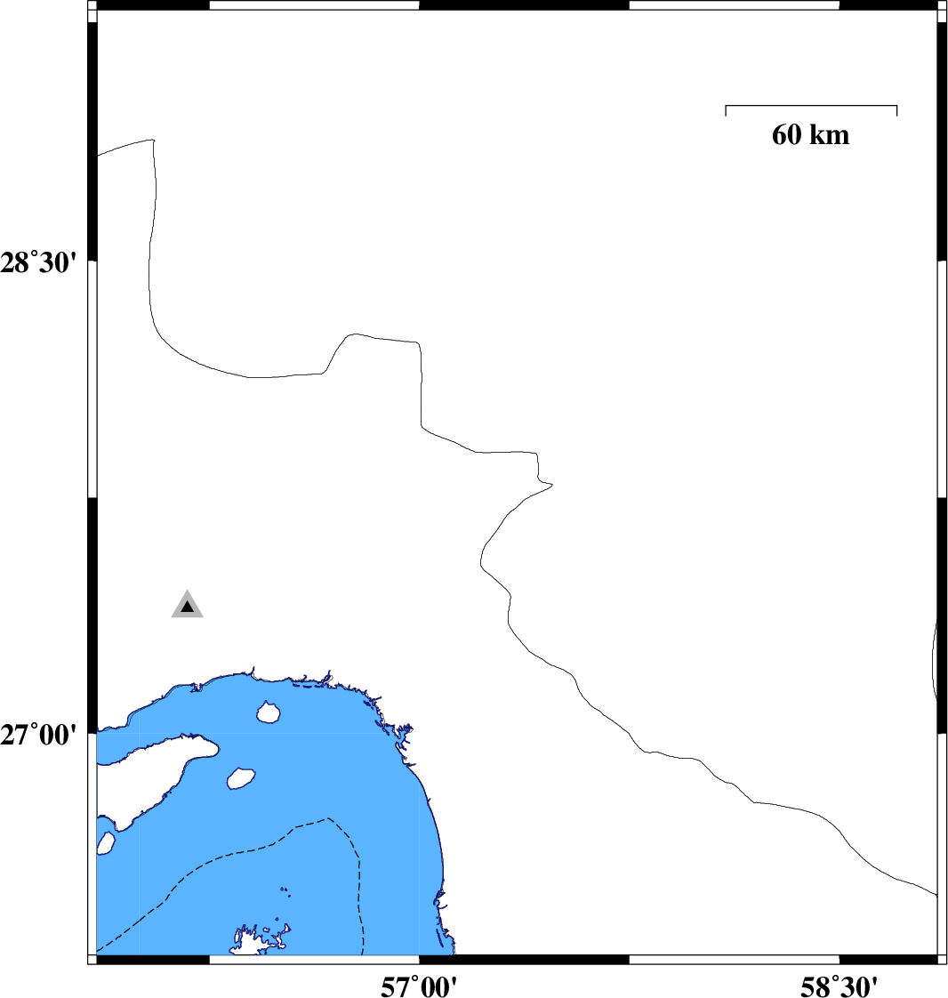 2023/07/06 | 15:09:53.8 | 18:39:53.8 | 27.789 | 57.349 | 12 | ML:3.2 | Hormozgan Province, 42 km North-East of Dehbarez | ||