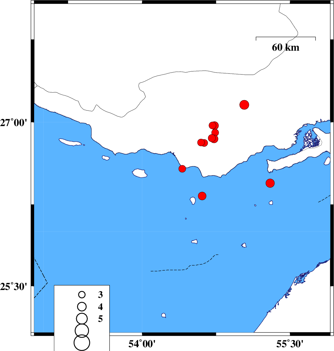 Persian Gulf, 44 km -West of Bandar-e lengeh | |