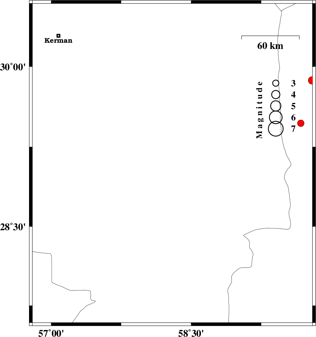 | 2023/06/12 | 09:10:55.2 | 12:40:55.2 | 28.99 | 57.225 | 17 | ML:3.8 | Kerman Province, 61 km North-West of Jiroft |