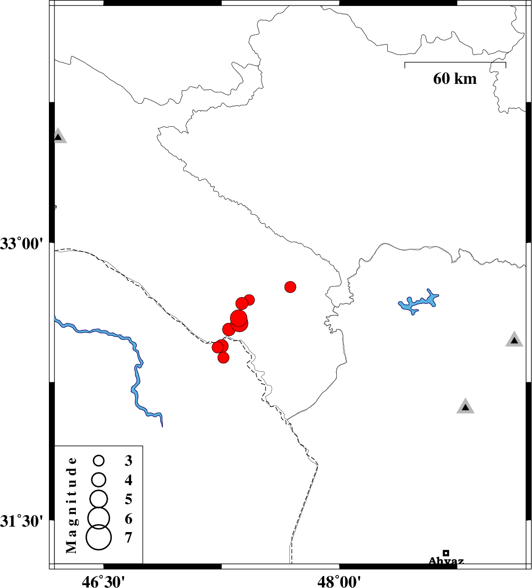 | 2023/07/10 | 20:23:56.8 | 23:53:56.8 | 32.762 | 47.687 | 10 | ML:3.2 | Ilam Province, 28 km South-East of Abdanan | ||