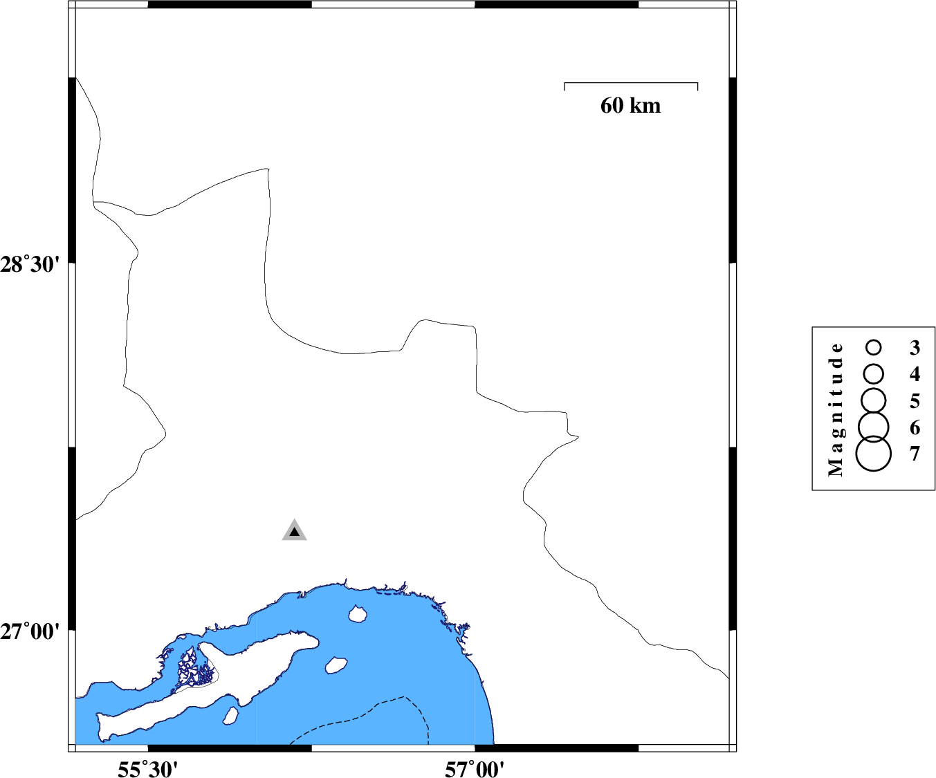 | 2023/07/16 | 14:14:56.2 | 17:44:56.2 | 28.029 | 56.666 | 15 | ML:3.3 | Hormozgan Province, 81 km South-East of Hajiabad |