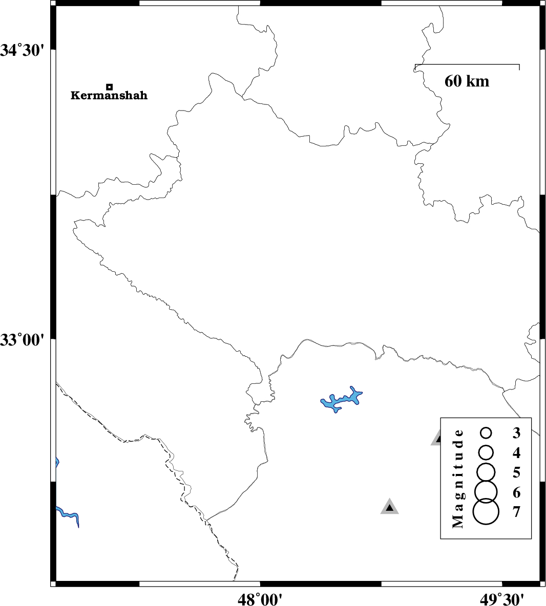 | 2023/07/20 | 22:32:33.6 | 02:02:33.6 | 33.224 | 48.233 | 12 | ML:3.6 | Lorestan Province, 31 km South-West of Khorramabad | ||