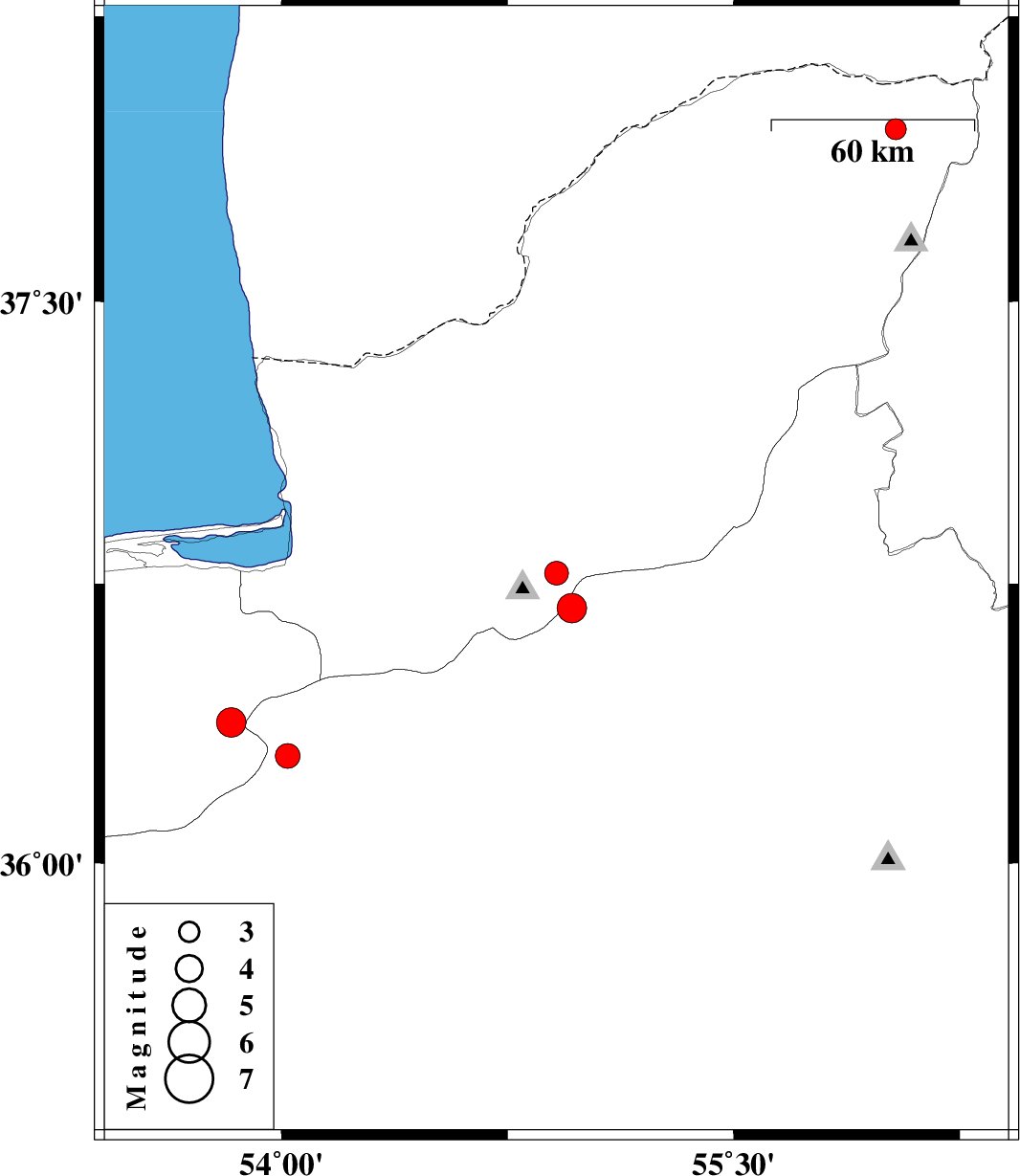 2023/07/20 03:05:51.3 06:35:51.3 36.68454.96310 ML:4.4 Semnan Province, 29 km North of Shahrud