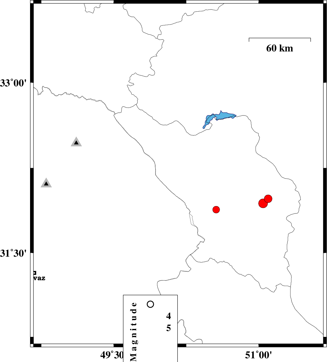 | 2023/07/23 | 07:10:42.4 | 10:40:42.4 | 32.092 | 49.631 | 12 | ML:3.3 | Khoozestan Province, 36 km North-East of Masjed Soleyman | ||