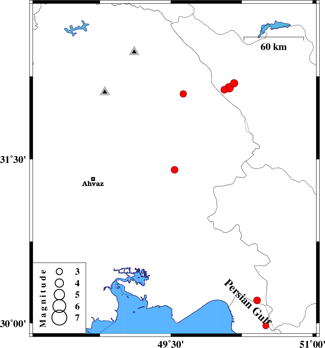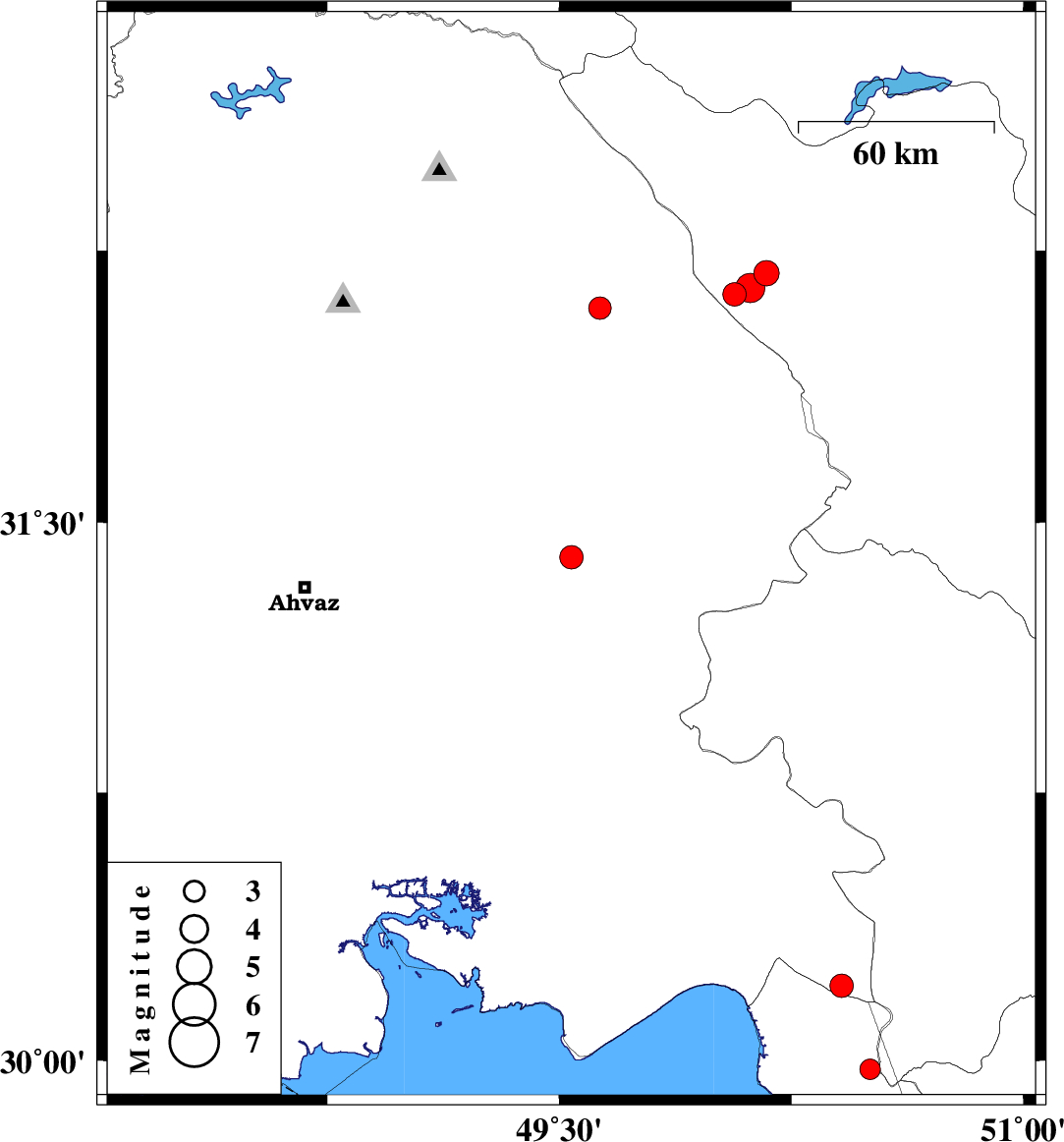| 2023/07/05 | 18:19:59.9 | 21:49:59.9 | 30.209 | 50.412 | 12 | ML:3.4 | Khoozestan Province, 39 km South-West of Dogonbadan |