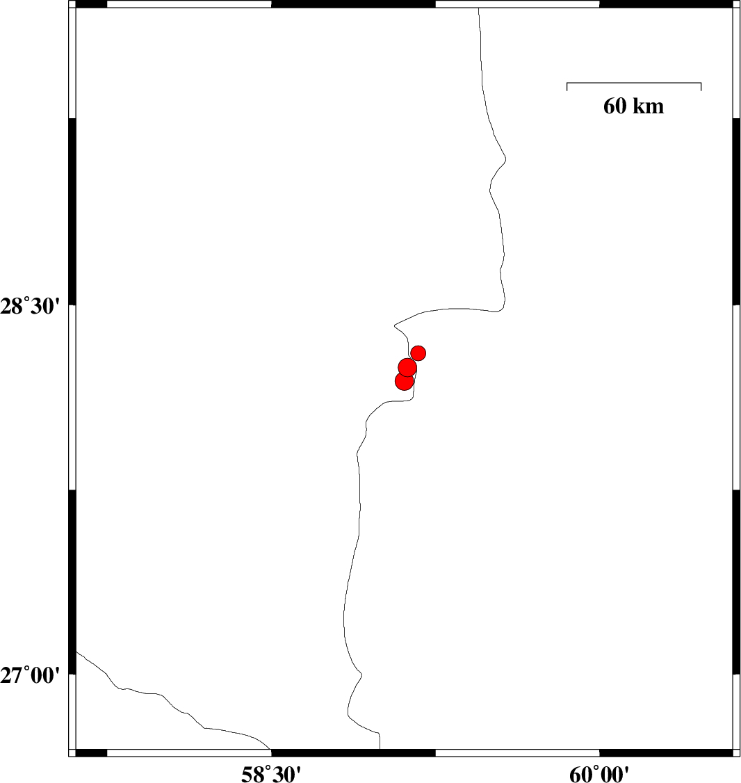 Map Region : lat:26.692-29.692  lon:57.607-60.607