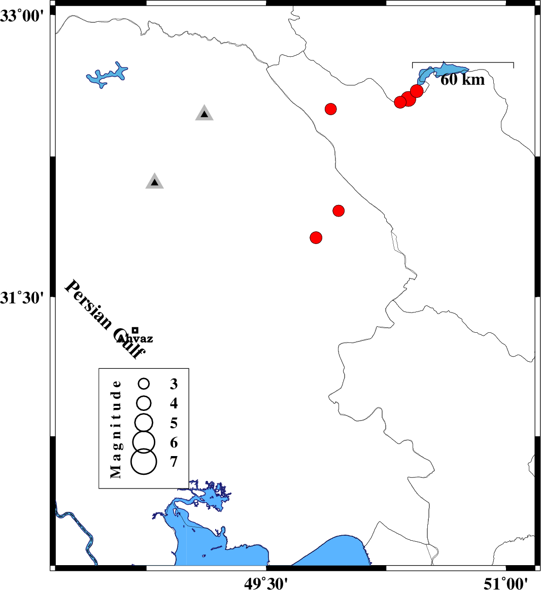 2023/07/24 | 02:56:00.5 | 06:26:00.5 | 31.404 | 49.539 | 10 | ML:3.4 | Khoozestan Province, 16 km North of Ramhormoz | ||