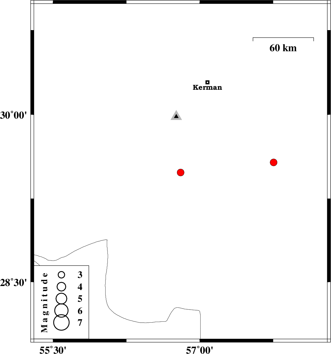 | 2023/07/27 | 16:28:25.0 | 19:58:25.0 | 29.574 | 57.755 | 12 | ML:3.3 | Kerman Province, 101 km North of Jiroft | ||