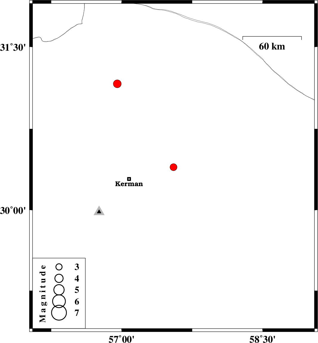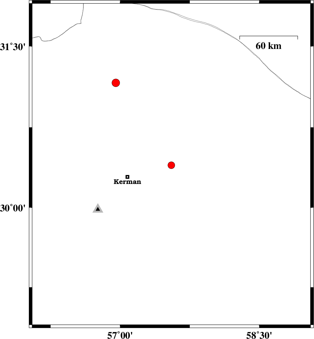 | 2023/08/07 | 04:23:10.8 | 07:53:10.8 | 30.396 | 57.552 | 12 | ML:3.4 | Kerman Province, 47 km North-East of Kerman | ||