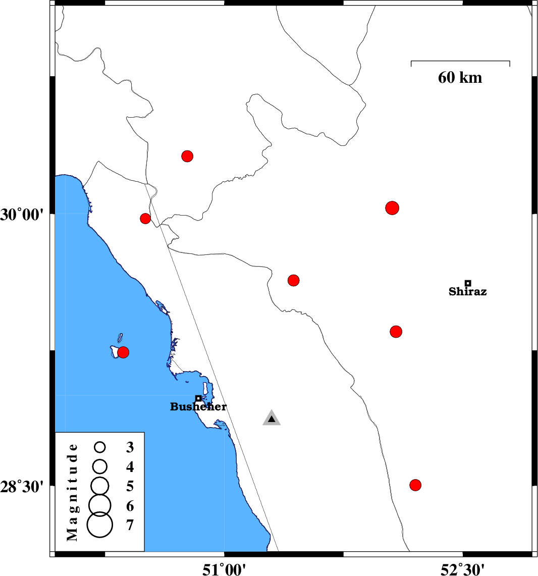 | 2023/07/16 | 12:07:02.7 | 15:37:02.7 | 29.974 | 50.504 | 12 | ML:3 | Khoozestan Province, 44 km North of Bandar-e genaveh |