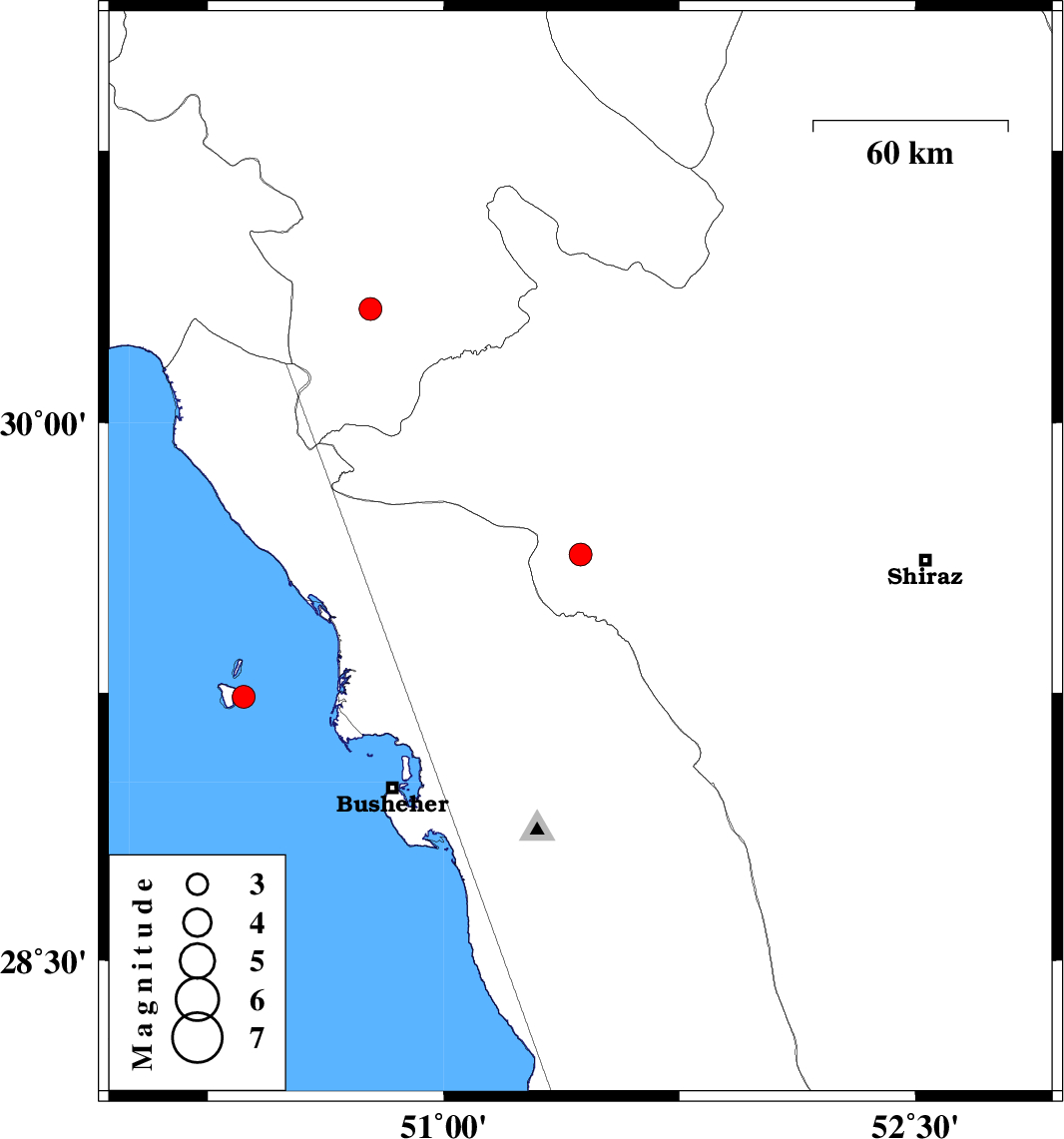 | 2023/08/02 | 14:52:46.7 | 18:22:46.7 | 29.239 | 50.363 | 12 | ML:3.3 | Persian Gulf, 40 km South-West of Bandar-e genaveh |