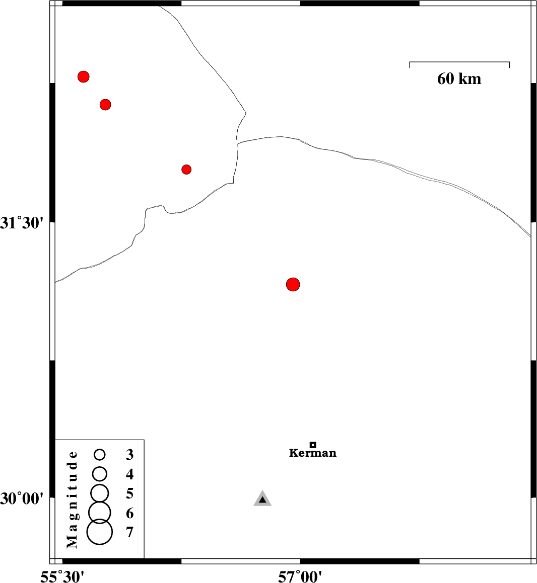 | 2023/07/16 | 11:18:30.9 | 14:48:30.9 | 31.785 | 56.282 | 12 | ML:2.7 | Yazd Province, 77 km North-West of Ravar |