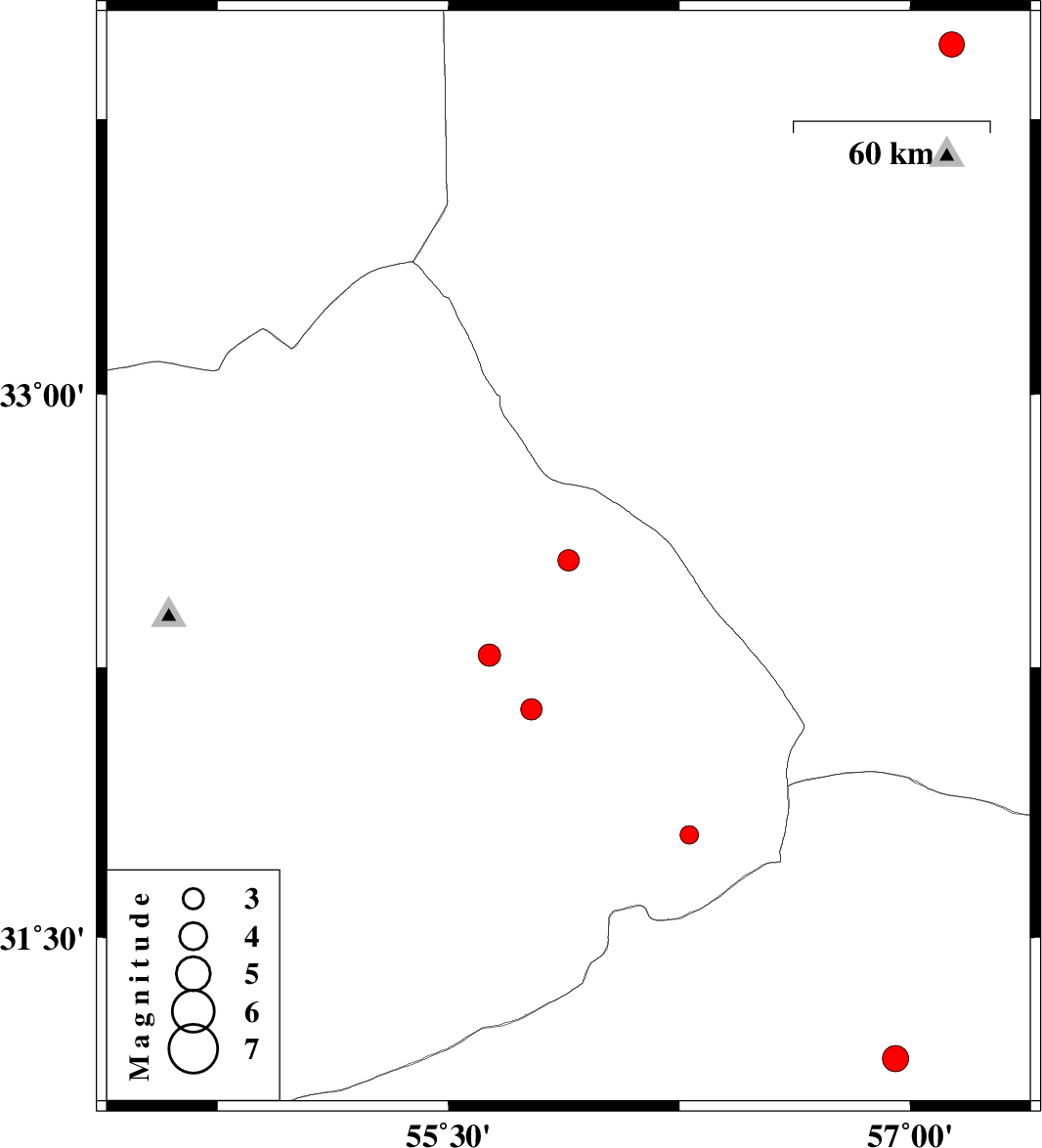 | 2023/08/04 | 18:00:10.1 | 21:30:10.1 | 33.953 | 57.135 | 12 | ML:3.6 | Khorasan(center) Province, 44 km North-East of Tabas | ||
