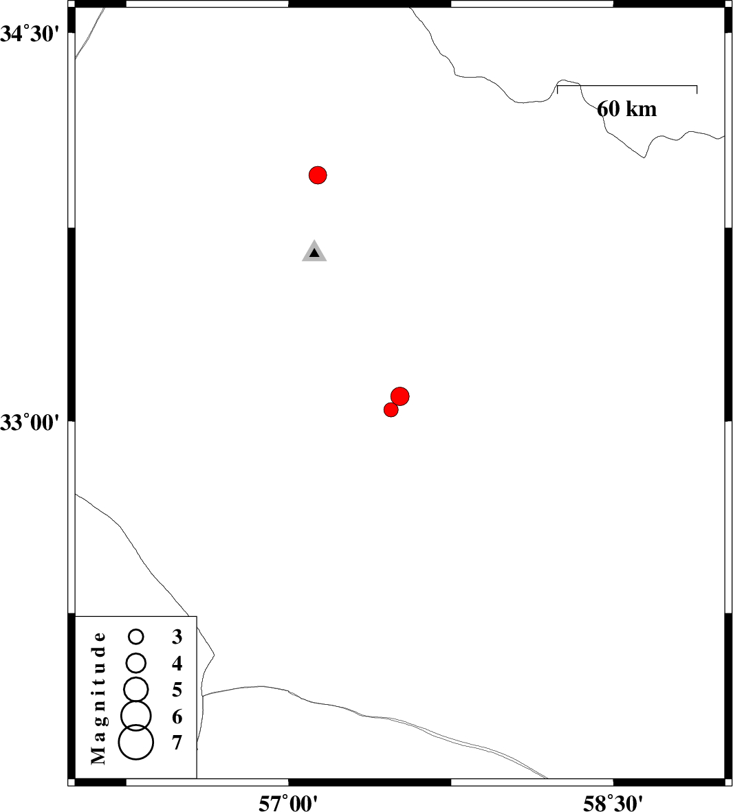 | 2023/08/04 | 18:00:10.1 | 21:30:10.1 | 33.953 | 57.135 | 12 | ML:3.6 | Khorasan(center) Province, 44 km North-East of Tabas | ||