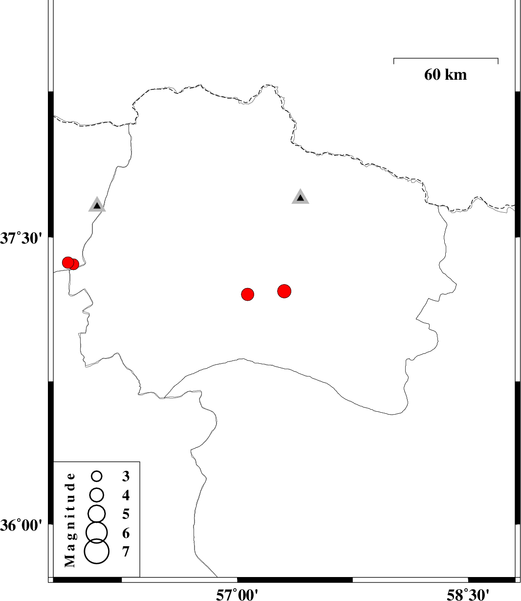 | 2023/08/15 | 13:05:37.6 | 16:35:37.6 | 37.22 | 57.305 | 8 | ML:4 | Khorasan(north) Province, 28 km South of Bojnurd | ||