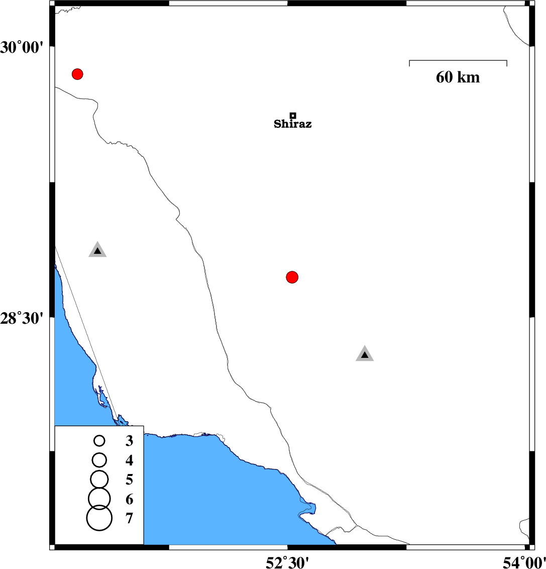 | 2023/08/15 | 14:46:13.2 | 18:16:13.2 | 29.847 | 51.171 | 12 | ML:3.1 | Fars Province, 45 km South-West of Nurabad |