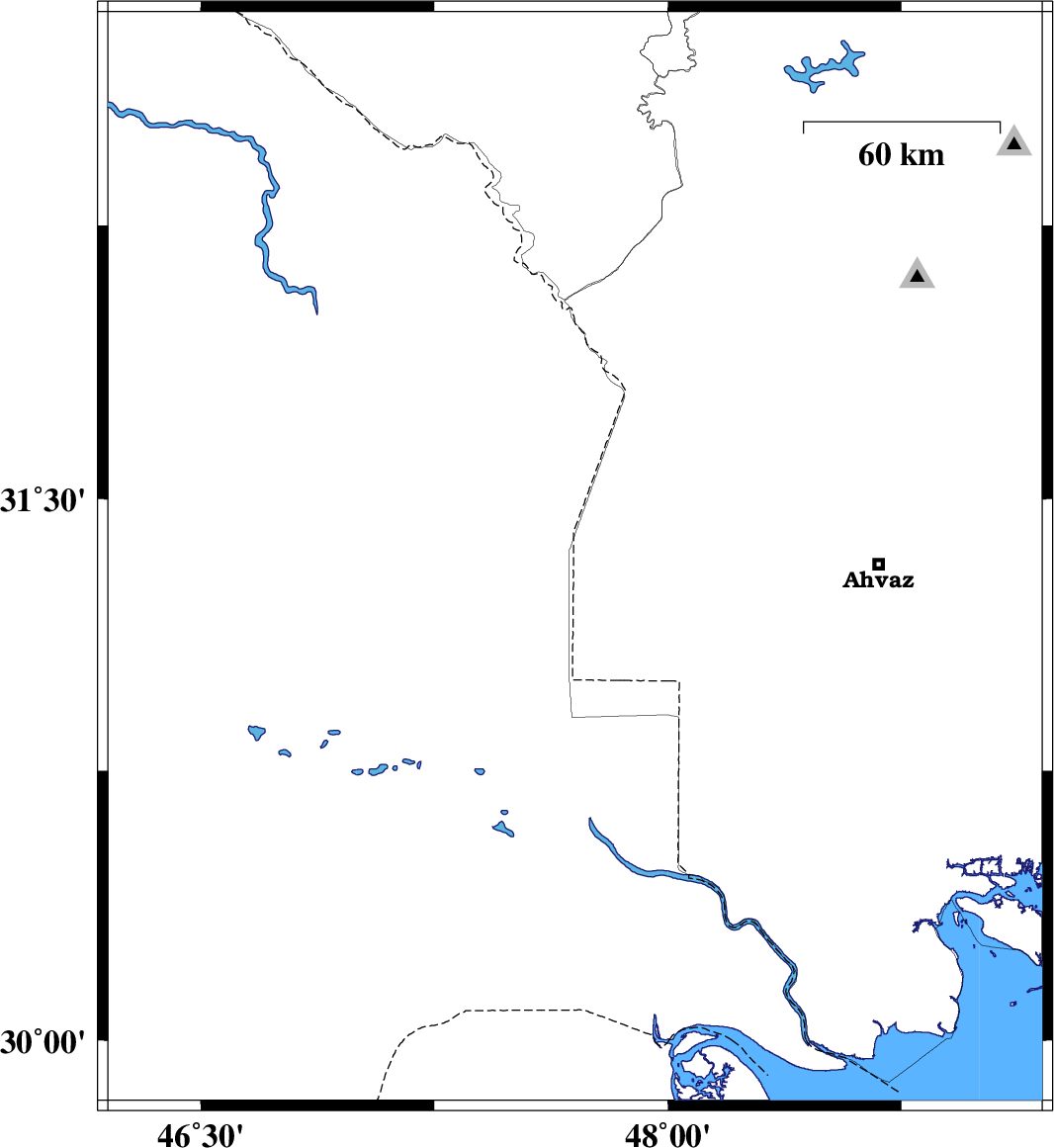 | 2023/08/20 | 21:54:33.6 | 01:24:33.6 | 31.332 | 47.702 | 12 | ML:3.4 | Khoozestan Province, 52 km South-West of Susangerd | ||