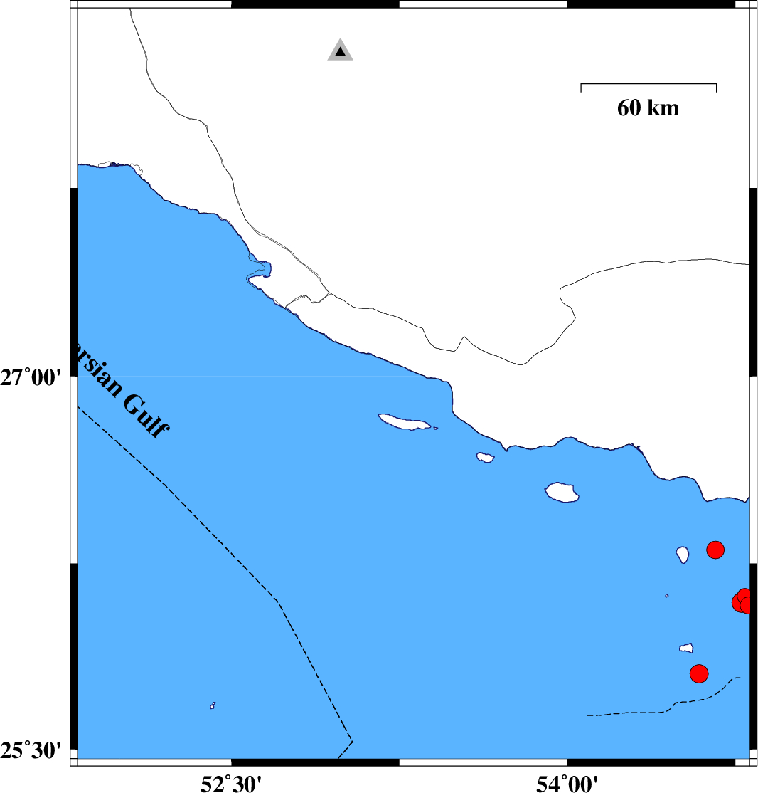 Persian Gulf, 43 km South-East of Lamerd | |