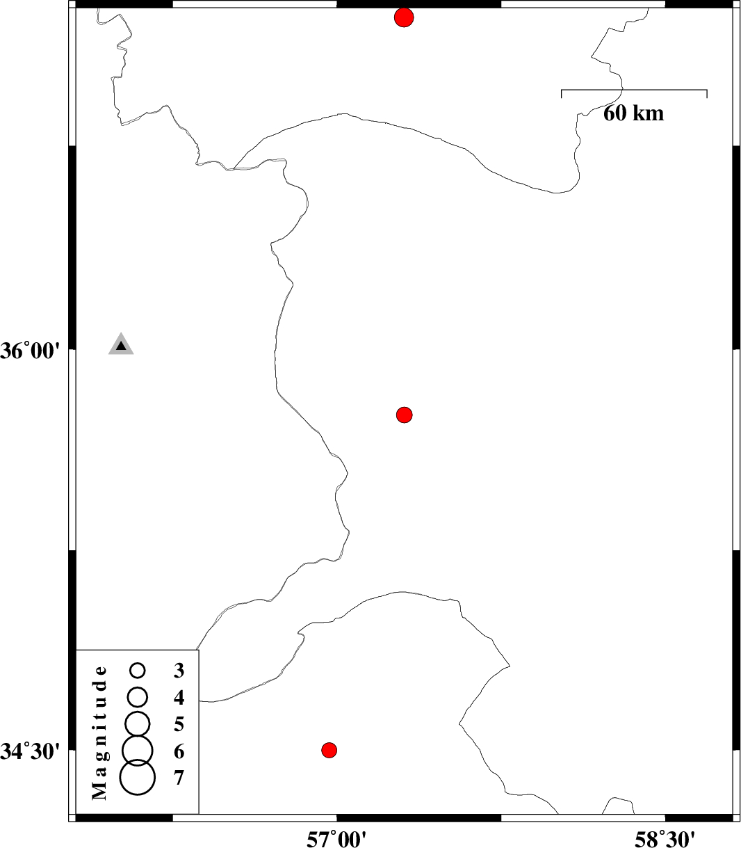 | 2023/08/15 | 13:05:37.6 | 16:35:37.6 | 37.22 | 57.305 | 8 | ML:4 | Khorasan(north) Province, 28 km South of Bojnurd |