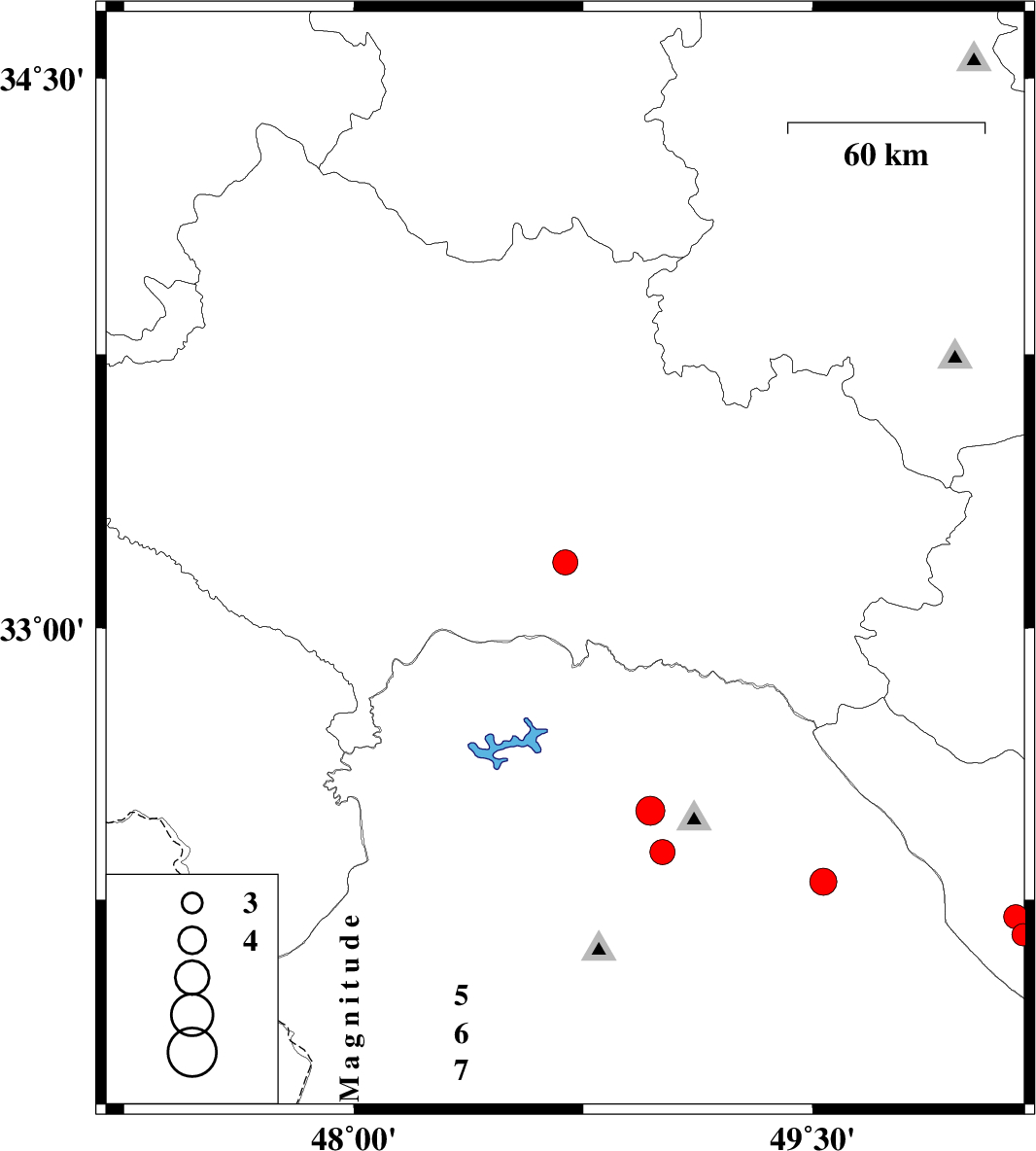| 2023/08/27 | 10:17:25.5 | 13:47:25.5 | 33.181 | 48.691 | 12 | ML:3.6 | Lorestan Province, 45 km South-East of Khorramabad | ||