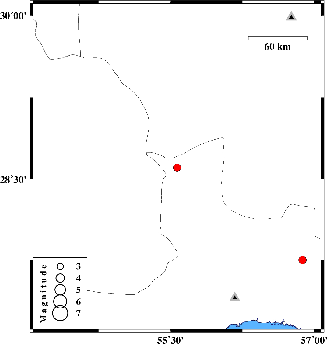 | 2021/05/11 | 04:40:53.0 | 09:10:53.0 | 27.751 | 56.877 | 12 | ML:3.7 | Hormozgan Province, 51 km North-West of Dehbarez |