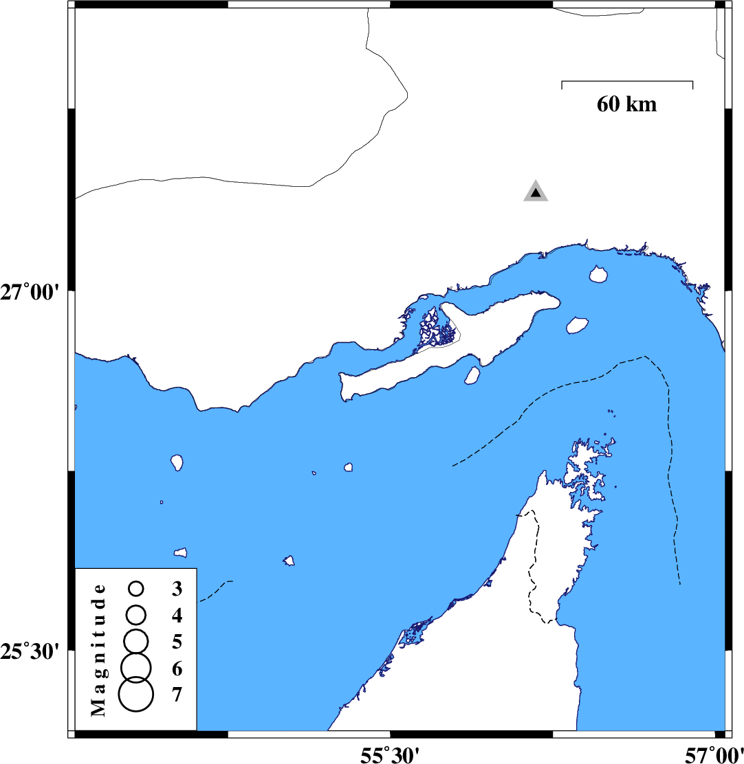 | 2021/04/29 | 10:23:47.7 | 14:53:47.7 | 26.663 | 55.544 | 12 | ML:3.6 | Persian Gulf, 71 km North-East of Bandar-e lengeh |