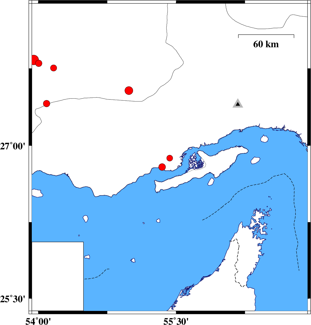 2023/08/20 | 08:48:23.2 | 12:18:23.2 | 27.534 | 54.985 | 12 | ML:4 | Fars Province, 66 km South-East of Lar | ||