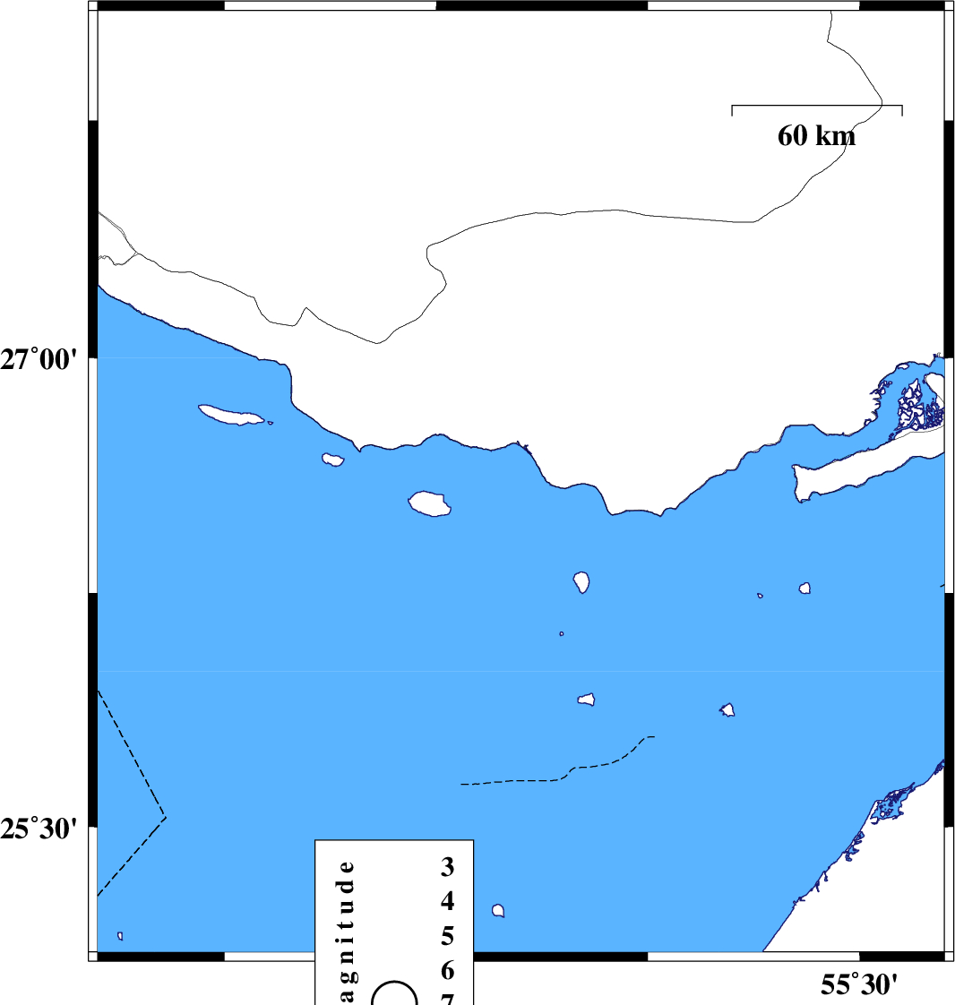 2023/09/02 | 01:55:08.5 | 05:25:08.5 | 26.625 | 54.268 | 12 | ML:4.4 | Persian Gulf, 64 km South of Bastak | ||