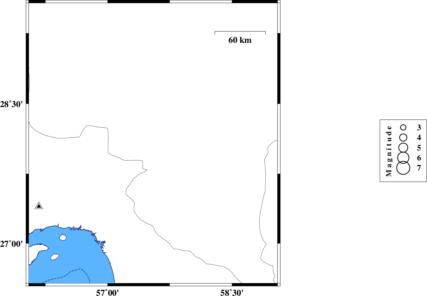 | 2023/09/02 | 14:30:37.9 | 18:00:37.9 | 28.069 | 57.549 | 19 | ML:4.5 | Kerman Province, 19 km North-West of Kahnuj |