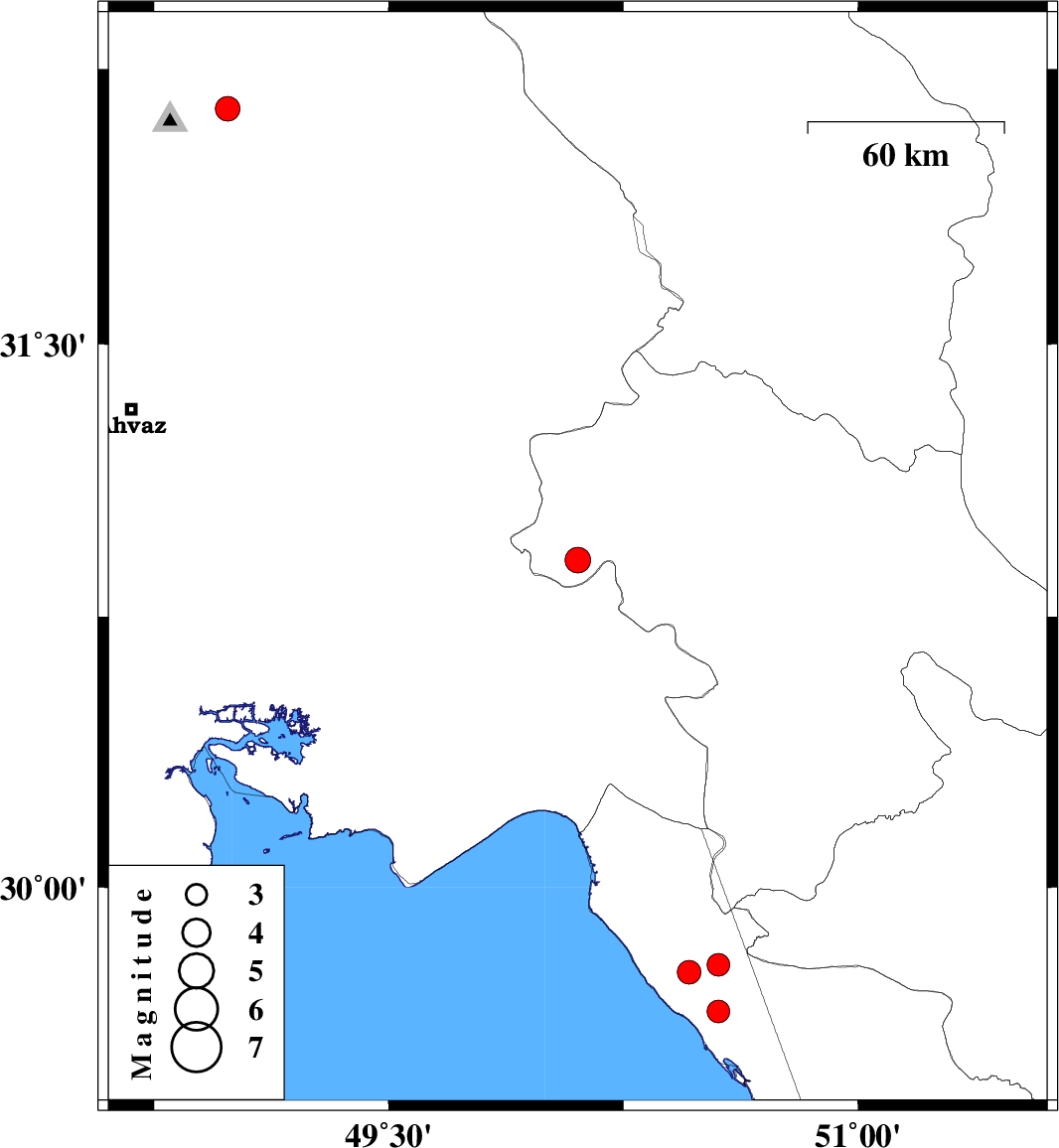 | 2023/09/01 | 06:40:04.9 | 10:10:04.9 | 29.764 | 50.46 | 12 | ML:3.4 | Bushehr Province, 22 km North of Bandar-e genaveh | ||