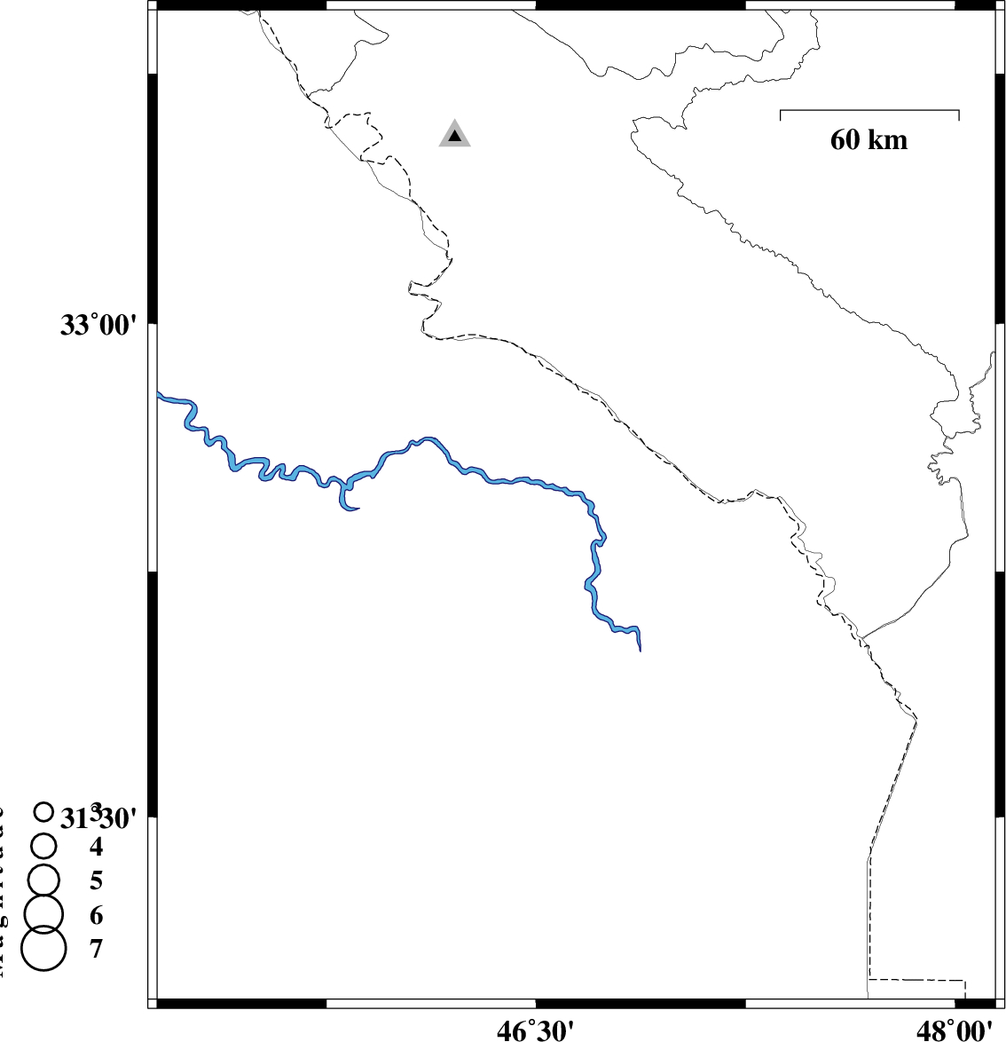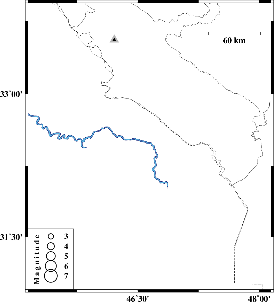 | 2023/09/04 | 08:24:54.1 | 11:54:54.1 | 32.441 | 46.644 | 16 | ML:3.7 | Iraq, 64 km South-West of Dehloran |