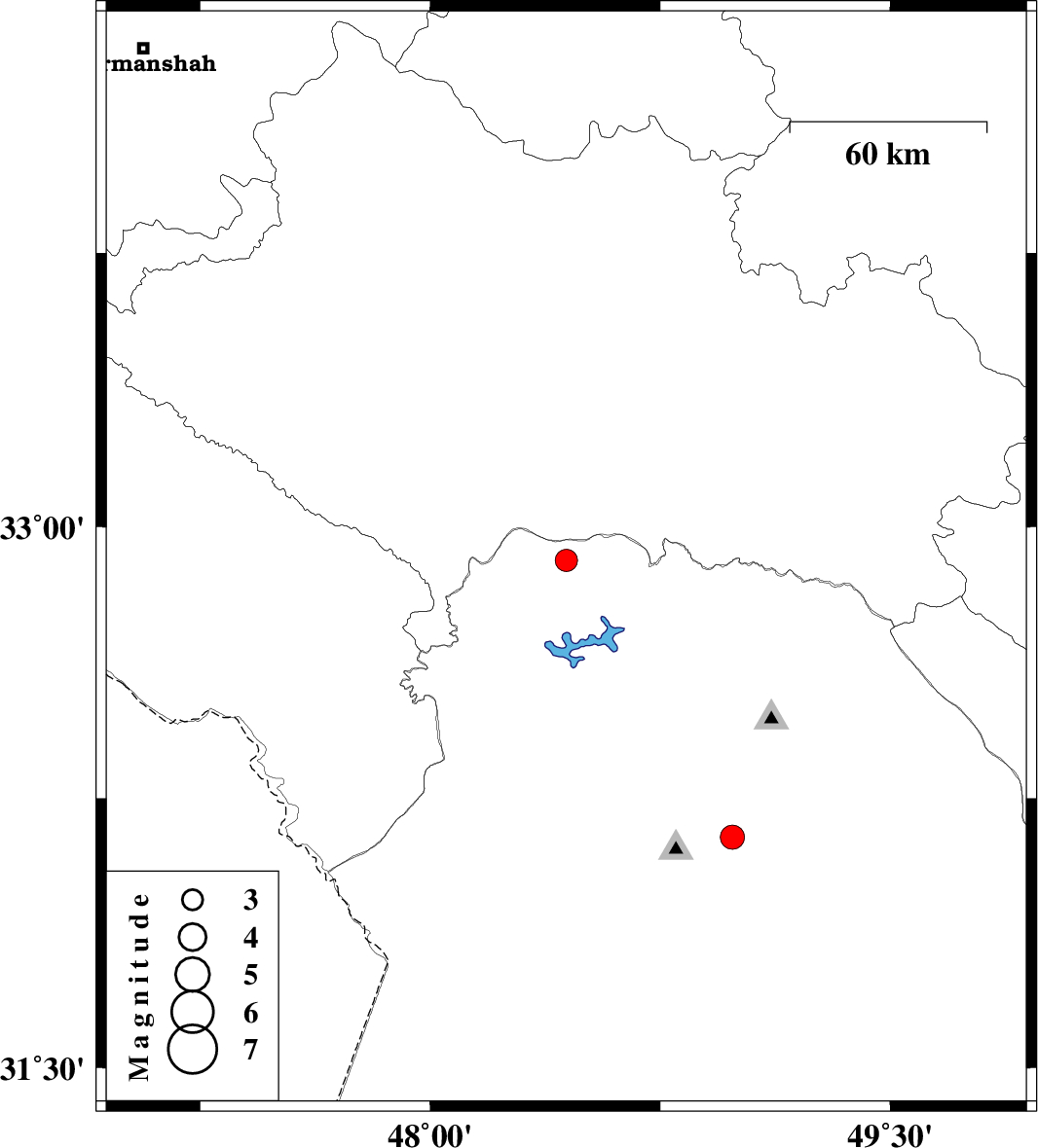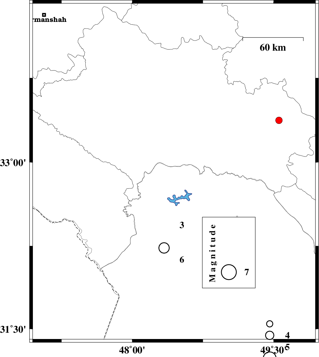 | 2023/09/04 | 11:31:38.1 | 15:01:38.1 | 32.907 | 48.444 | 9 | ML:3.3 | Khoozestan Province, 50 km North of Andimeshk | ||