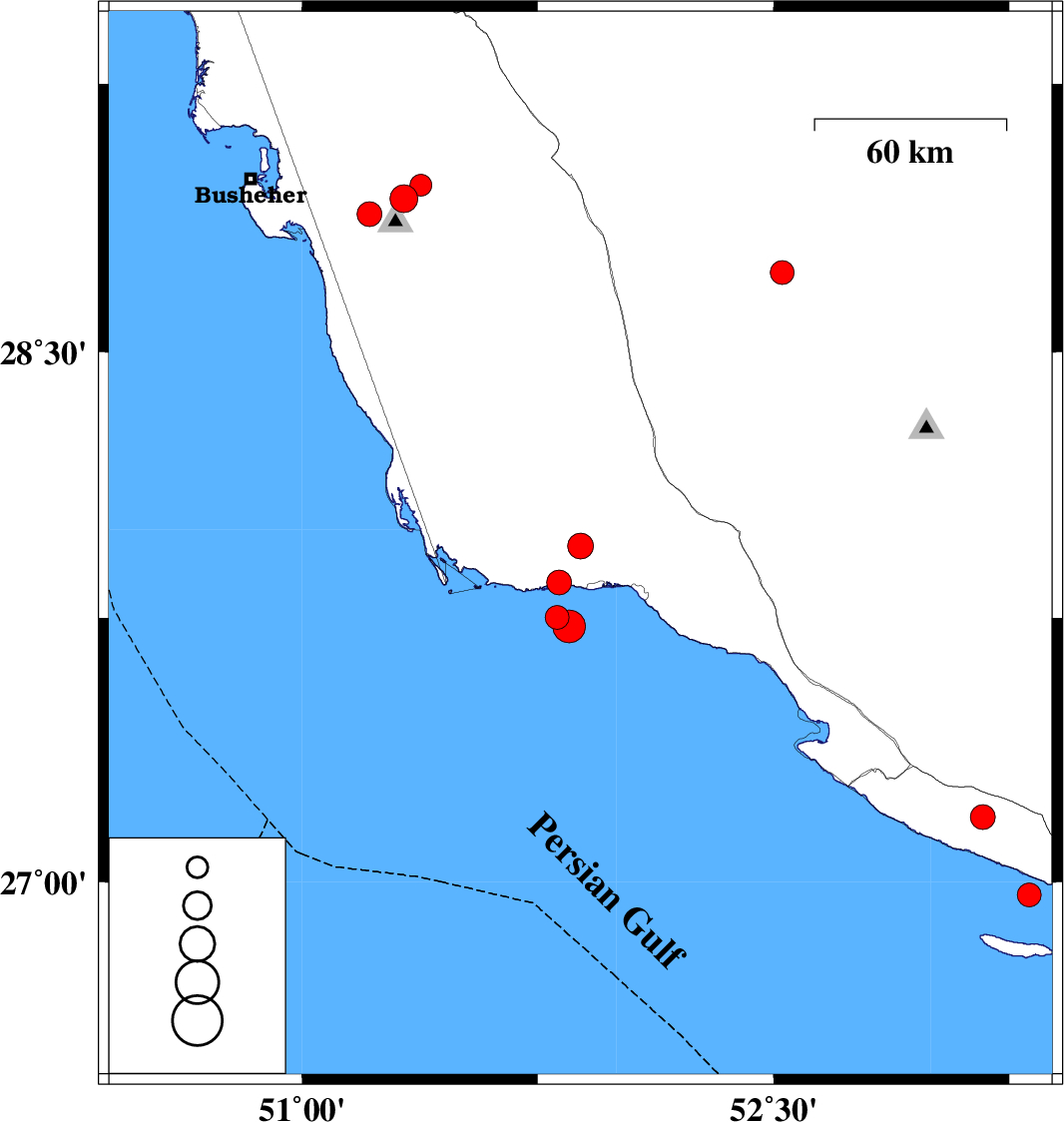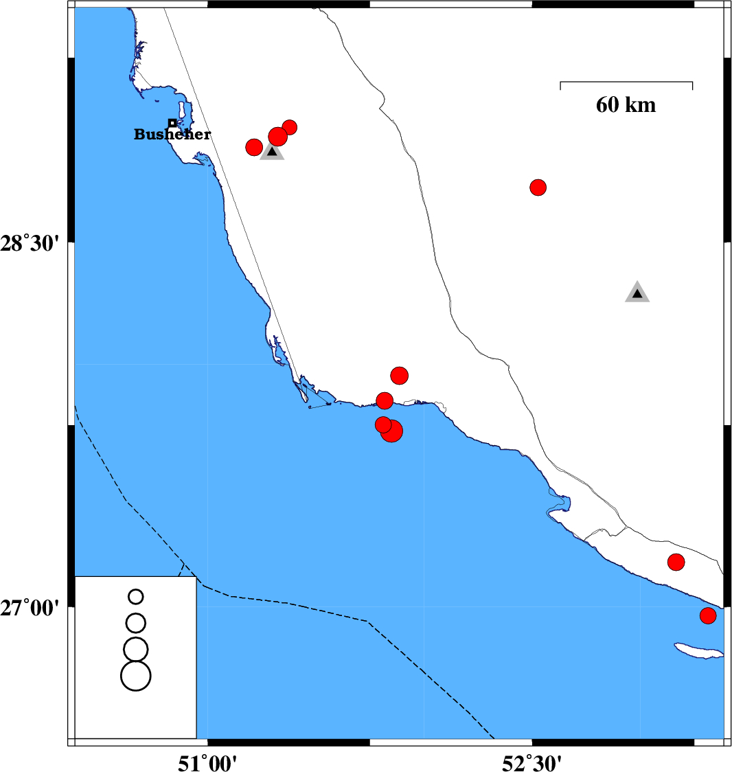 Bushehr Province, 22 km North-West of Bandar-e kangan | |