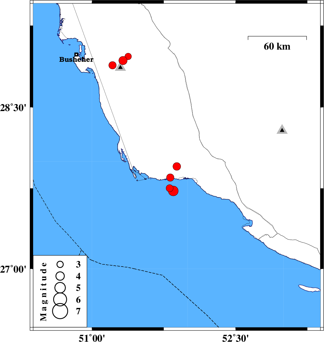 2023/09/07 | 14:16:30.5 | 17:46:30.5 | 27.953 | 51.886 | 12 | ML:3.7 | Bushehr Province, 22 km North-West of Bandar-e kangan | ||