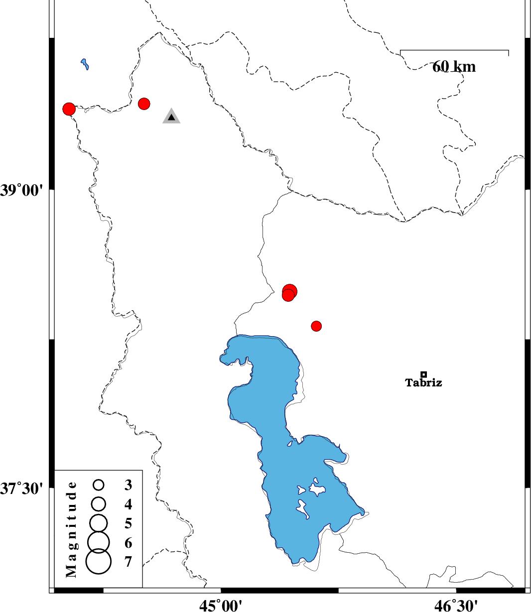 | 2023/09/05 | 02:51:46.9 | 06:21:46.9 | 38.316 | 45.608 | 6 | ML:3 | Azarbaijan Sharghi Province, 17 km North of Shabestar | ||