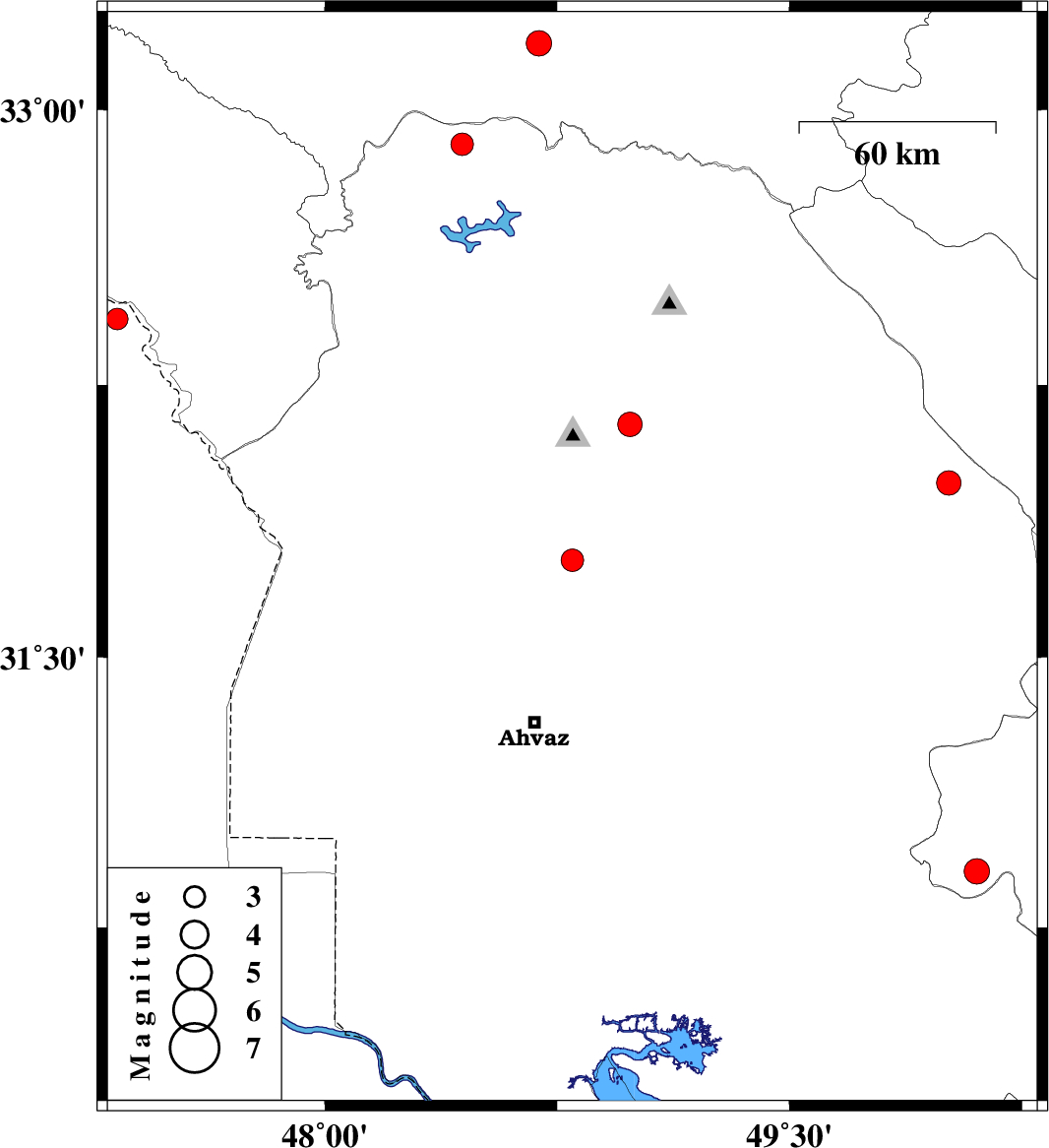 | 2023/09/04 | 11:31:38.1 | 15:01:38.1 | 32.907 | 48.444 | 9 | ML:3.3 | Khoozestan Province, 50 km North of Andimeshk | ||