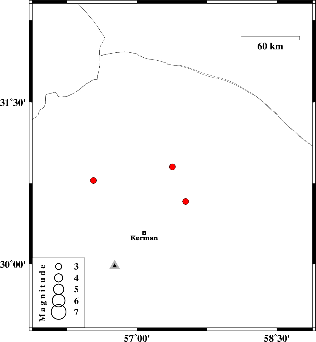 | 2023/09/21 | 17:08:10.9 | 20:38:10.9 | 30.583 | 57.521 | 12 | ML:3 | Kerman Province, 54 km North-East of Kerman | ||