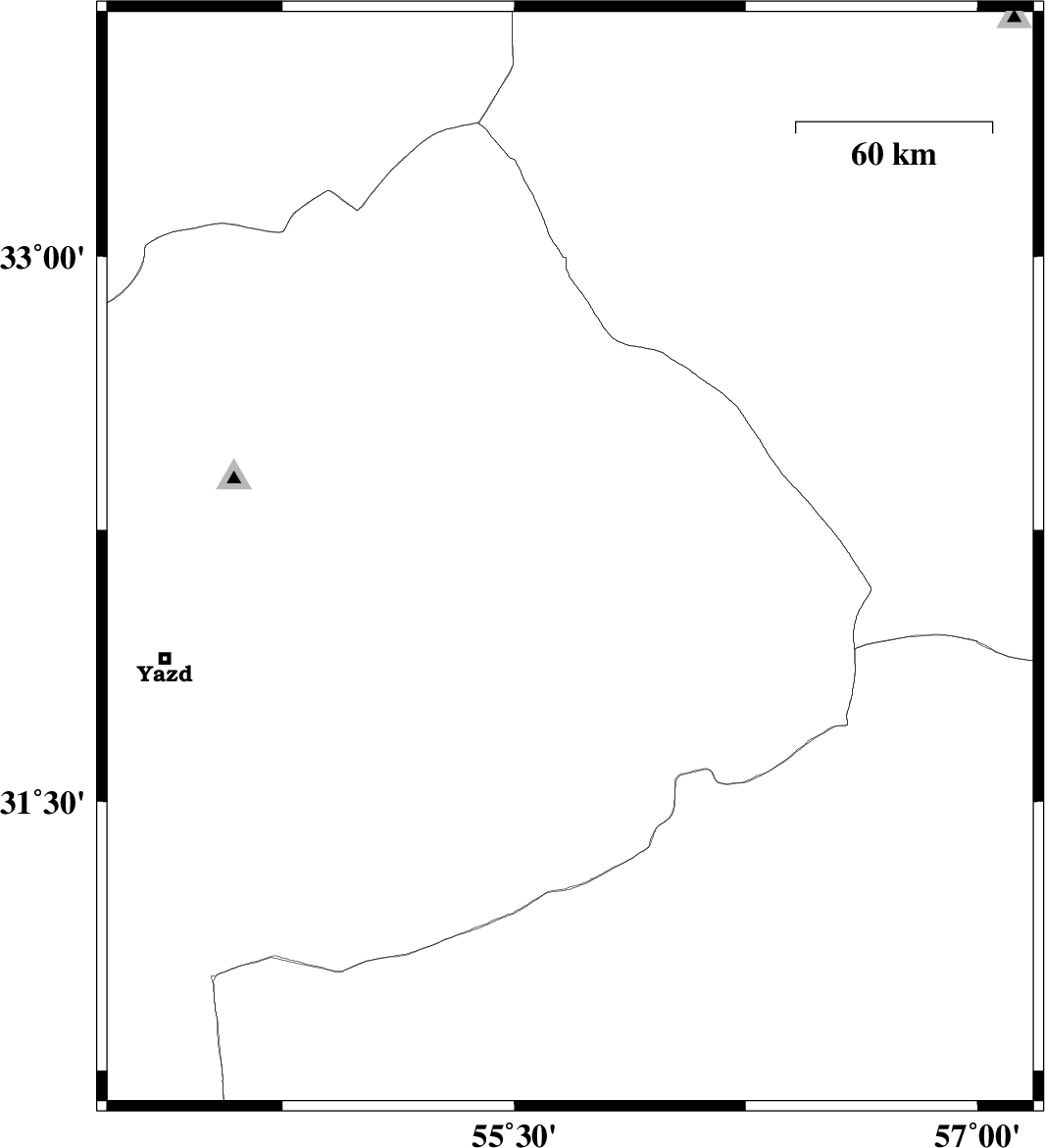 | 2023/10/01 | 18:20:19.1 | 21:50:19.1 | 32.166 | 55.681 | 12 | ML:2.8 | Yazd Province, 68 km North-East of Bafq |