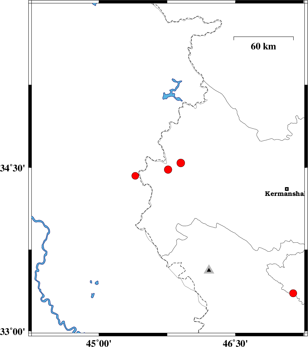 | 2023/10/04 | 03:28:41.7 | 06:58:41.7 | 34.482 | 45.76 | 8 | ML:3.8 | Kermanshah Province, 12 km -West of Sar-e pol-e zahab | ||