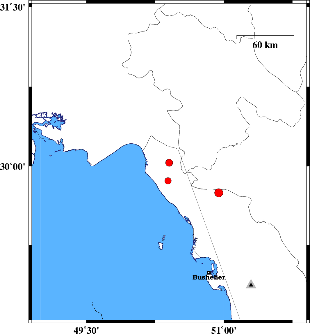 | 2023/09/28 | 08:52:36.7 | 12:22:36.7 | 29.747 | 50.945 | 12 | ML:4.1 | Bushehr Province, 46 km North-East of Bandar-e genaveh |