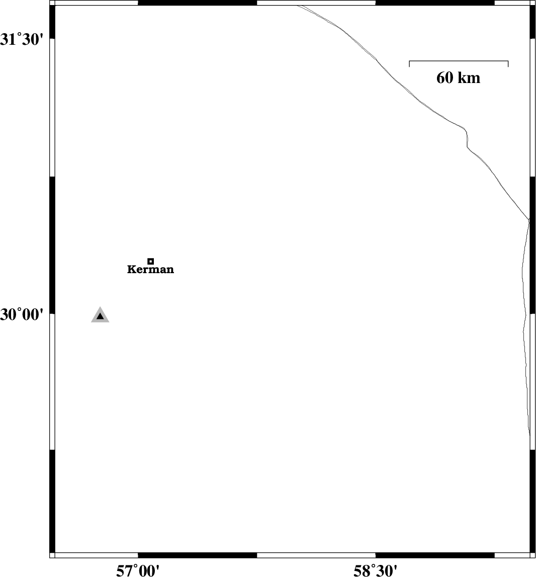 | 2023/09/29 | 01:39:12.4 | 05:09:12.4 | 30.904 | 57.38 | 12 | ML:3 | Kerman Province, 78 km -East of Zarand |