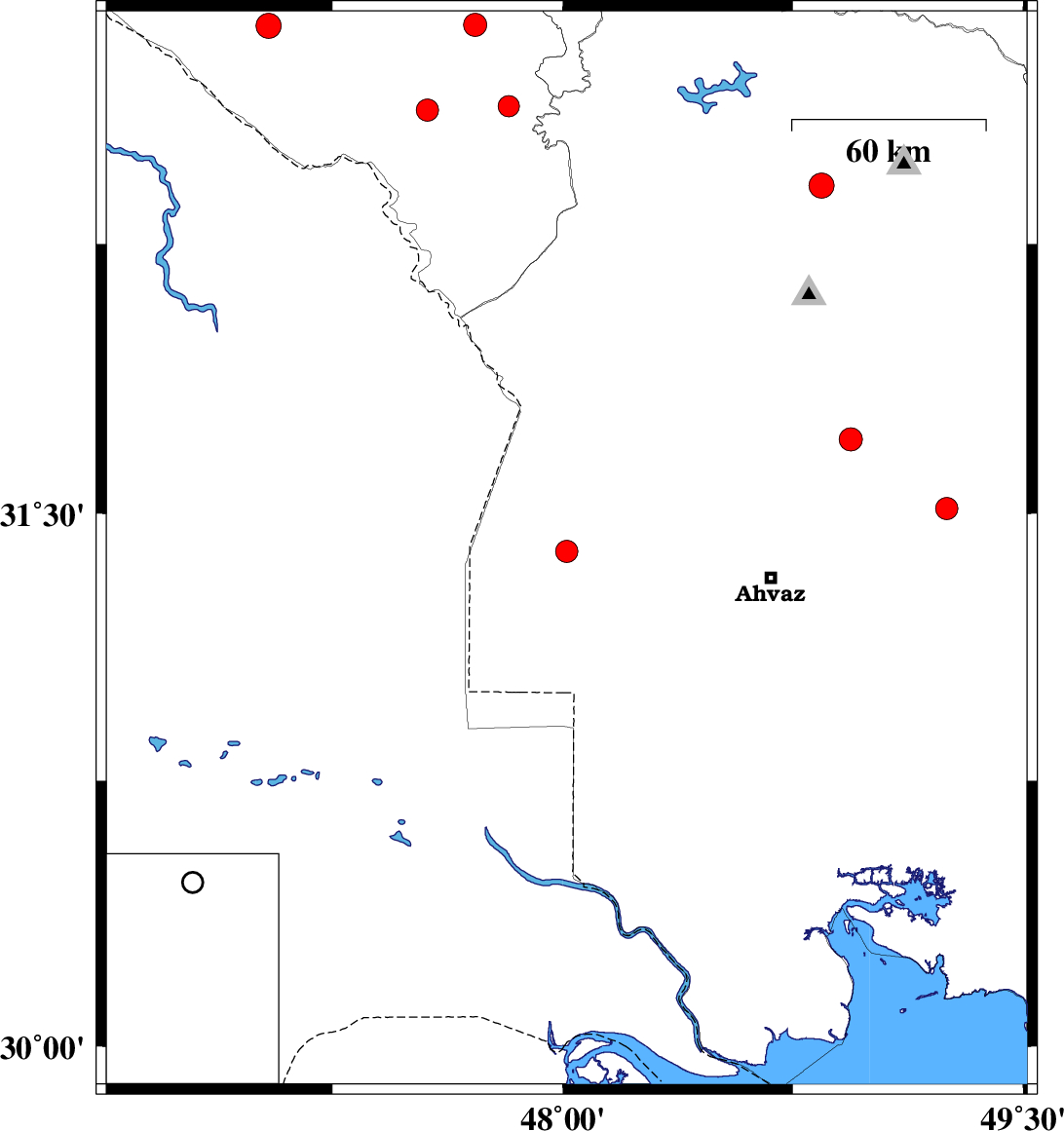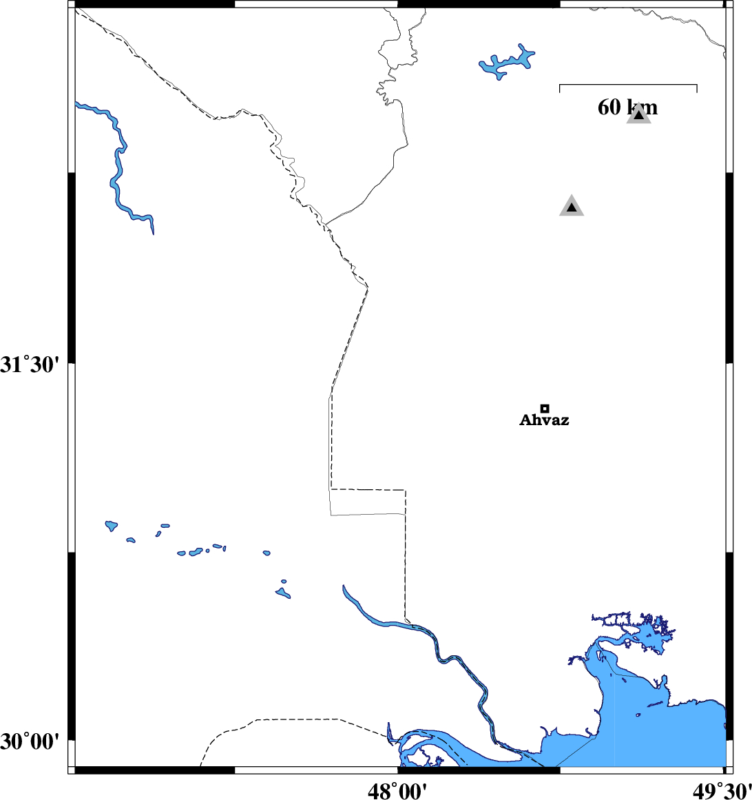 | 2023/10/25 | 05:06:50.2 | 08:36:50.2 | 31.394 | 48.013 | 16 | ML:3.2 | Khoozestan Province, 24 km South-West of Susangerd | ||