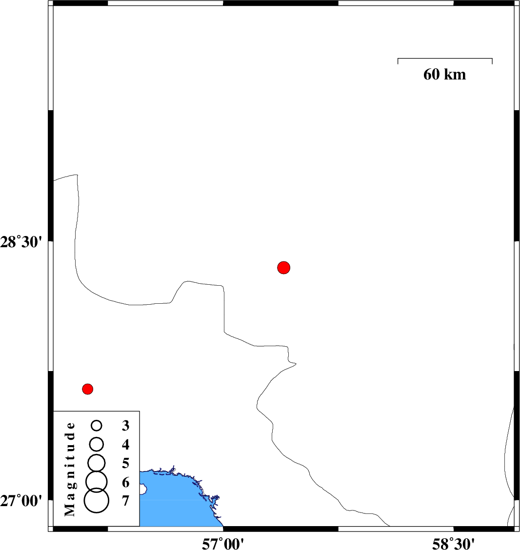 | 2023/10/28 | 19:57:30.3 | 23:27:30.3 | 27.645 | 56.118 | 12 | ML:3.1 | Hormozgan Province, 54 km North-West of Bandar-e abbas | ||