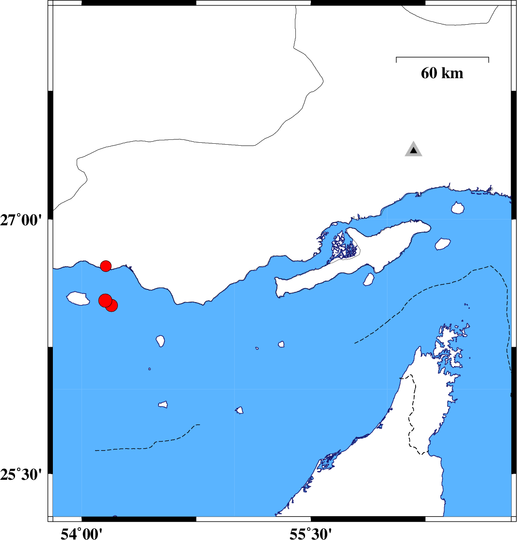 | 2023/11/15 | 11:13:02.4 | 14:43:02.4 | 26.746 | 55.311 | 12 | ML:3.3 | Persian Gulf, 52 km North-East of Bandar-e lengeh | ||