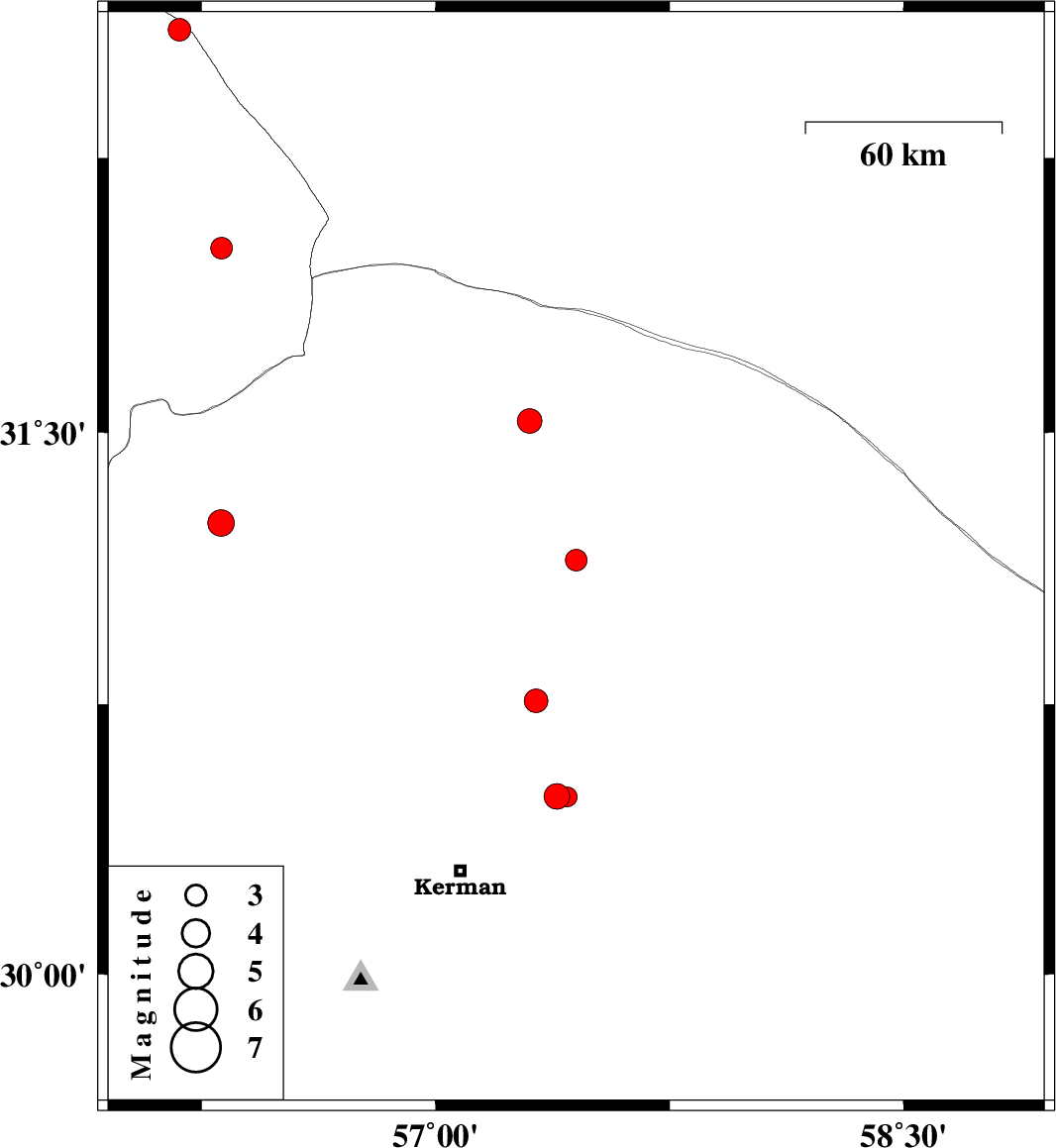 | 2023/11/18 | 07:32:14.5 | 11:02:14.5 | 30.76 | 57.321 | 12 | ML:3.4 | Kerman Province, 57 km North-East of Kerman | ||