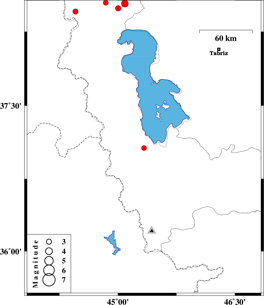 | 2021/03/19 | 02:44:54.3 | 06:14:54.3 | 38.453 | 44.454 | 12 | ML:3.1 | Azarbaijan Gharbi Province, 40 km North-West of Salmas | ||