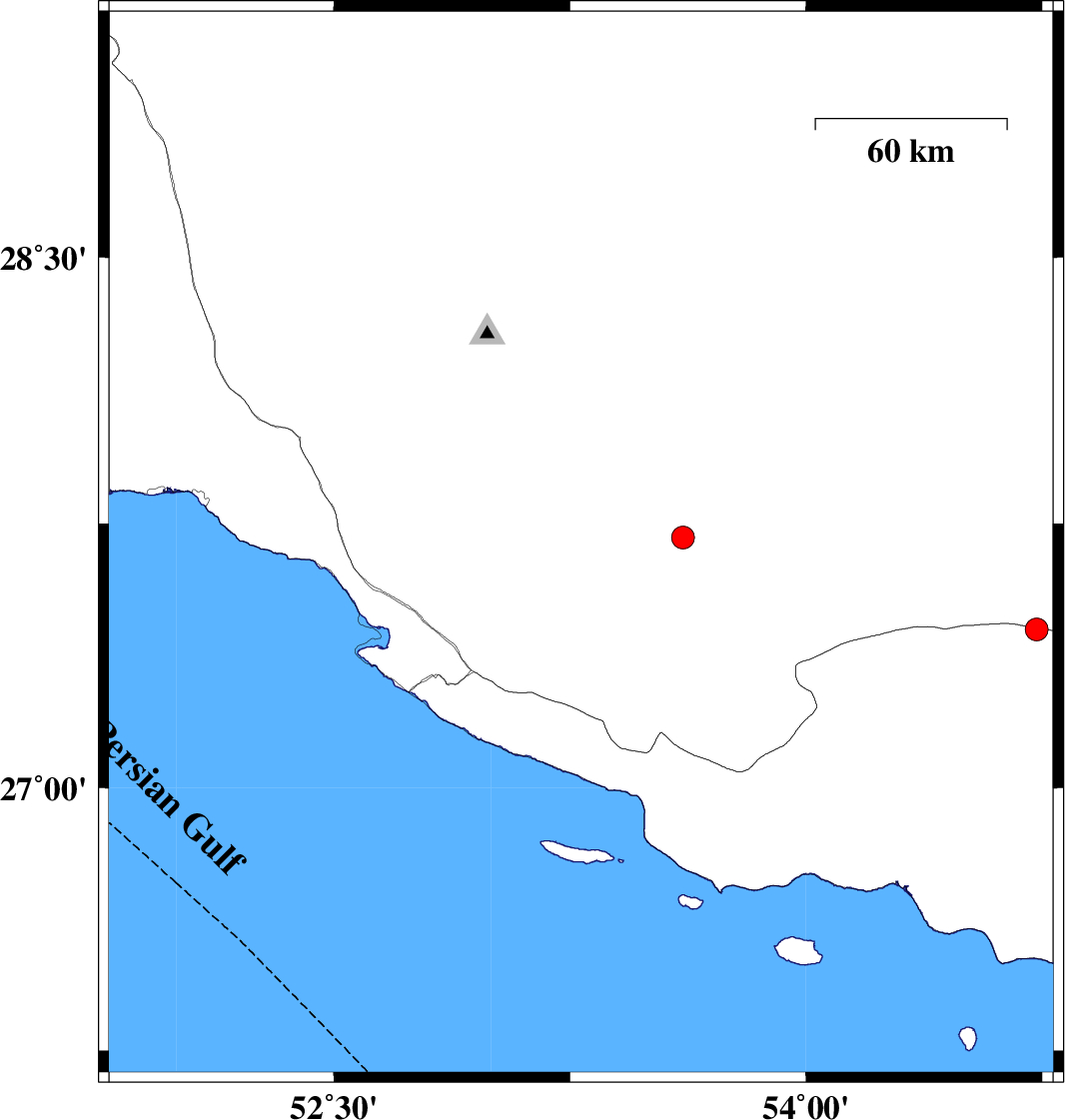 | 2021/02/22 | 04:15:11.5 | 07:45:11.5 | 26.77 | 54.617 | 20 | ML:3.3 | Hormozgan Province, 36 km North-West of Bandar-e lengeh |