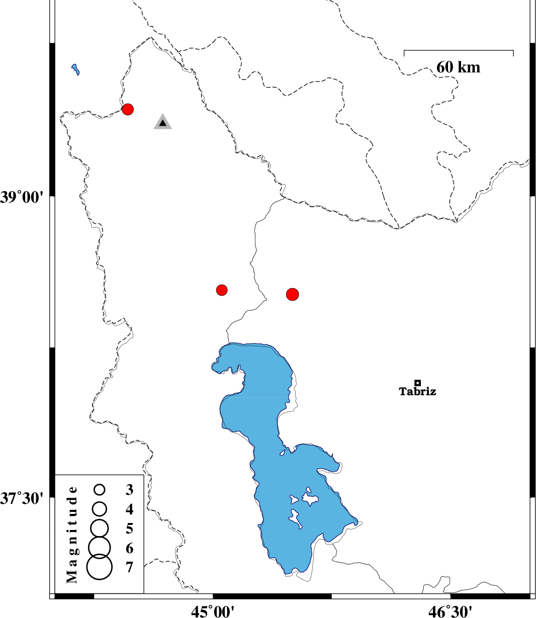 | 2023/12/14 | 04:10:02.9 | 07:40:02.9 | 38.514 | 45.502 | 12 | ML:3.5 | Azarbaijan Sharghi Province, 25 km -West of Marand | ||